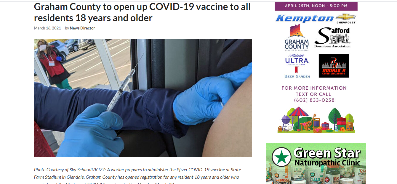 Graham County (AZ) to open up COVID-19 vaccine to all residents 18 years and older