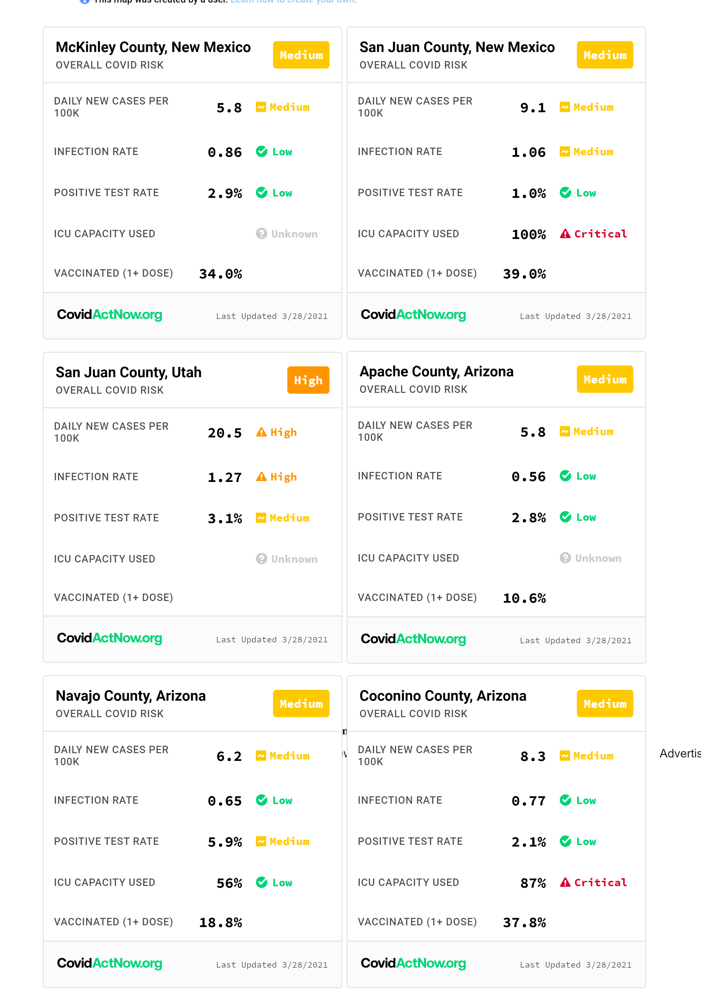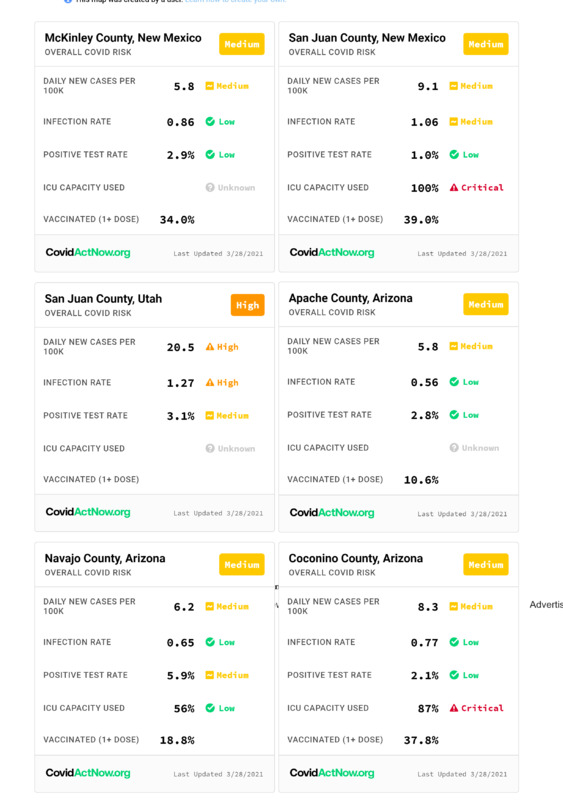 Caution is still warranted: Highly contagious variants of the virus continue to spread. The more lethal U.K. variant is doubling every 10 days throughout the United States. It now represents more than half of new U.S. cases. Many jurisdictions near the Navajo Nation are relaxing COVID restrictions. Some health experts warn that easing up right now is too soon. It could lead to an increase in new cases.