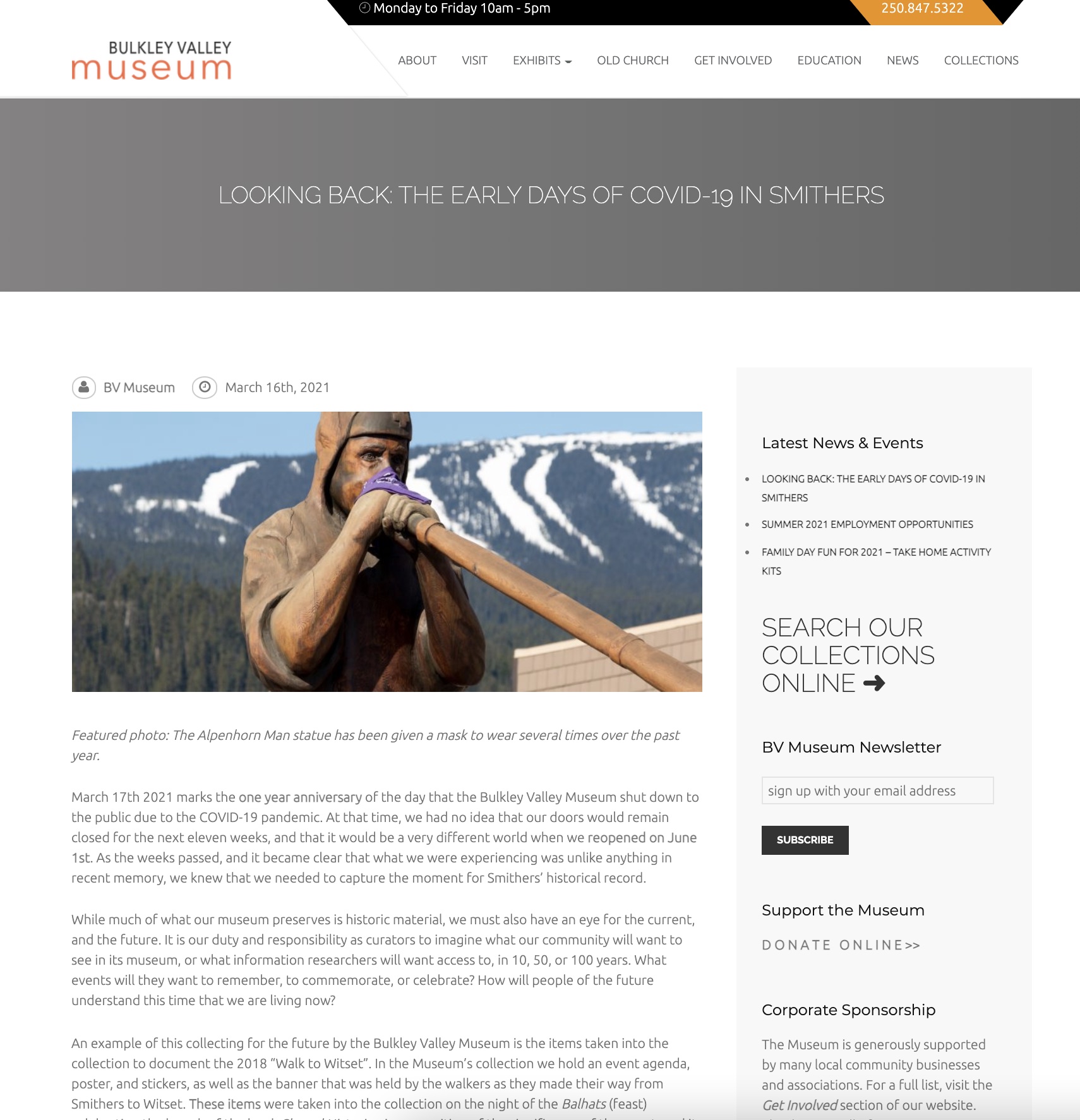 This item was submitted on March 31, 2021 by Bulkley Valley Museum using the form “Share Your Story” on the site “A Journal of the Plague Year”: https://www.covid-19archive.org/s/archive