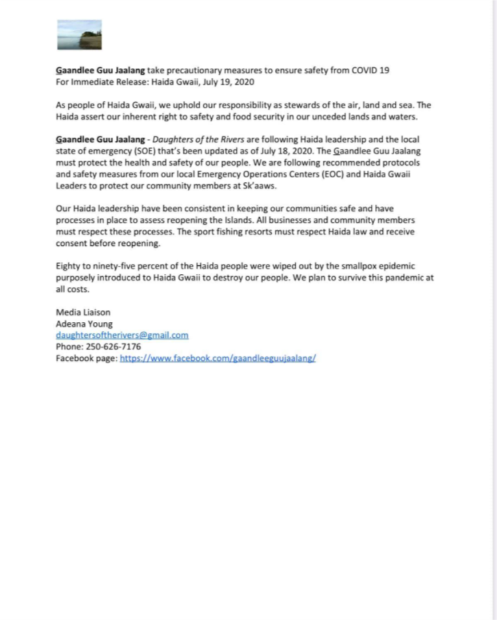 G̱aandlee Guu Jaalang take precautionary measures to ensure safety from COVID 19.