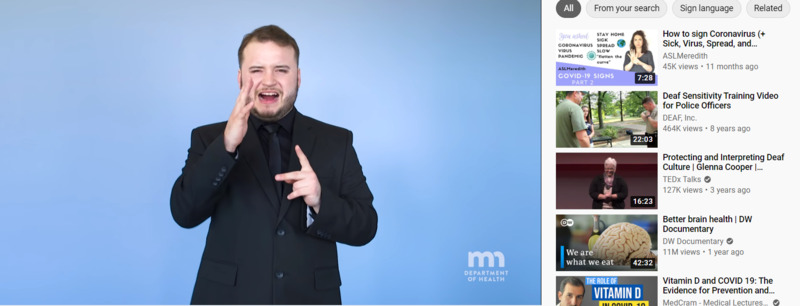 Minnesota Department of Health Travel, and Covid-19 Information in ASL