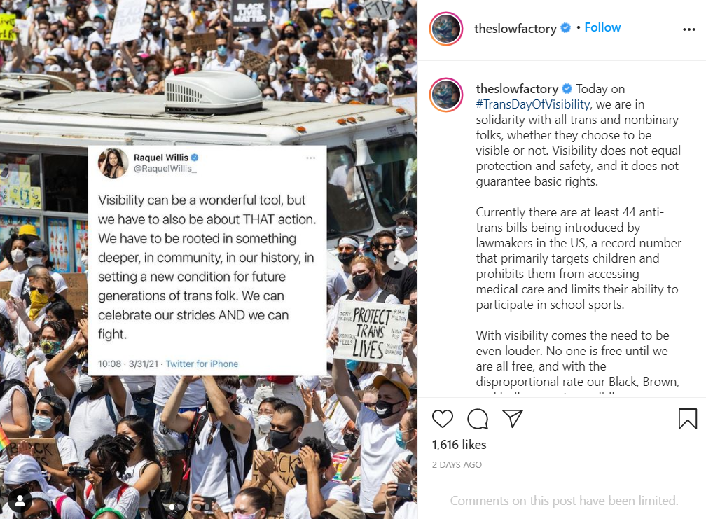 Today on #TransDayOfVisibility, we are in solidarity with all trans and nonbinary folks, whether they choose to be visible or not. Visibility does not equal protection and safety, and it does not guarantee basic rights.