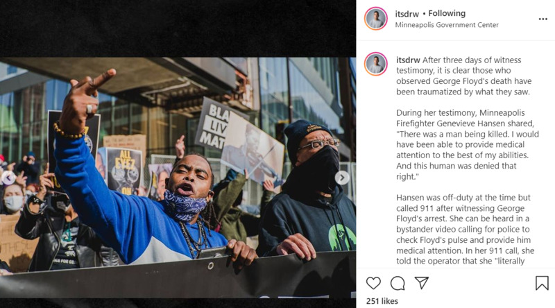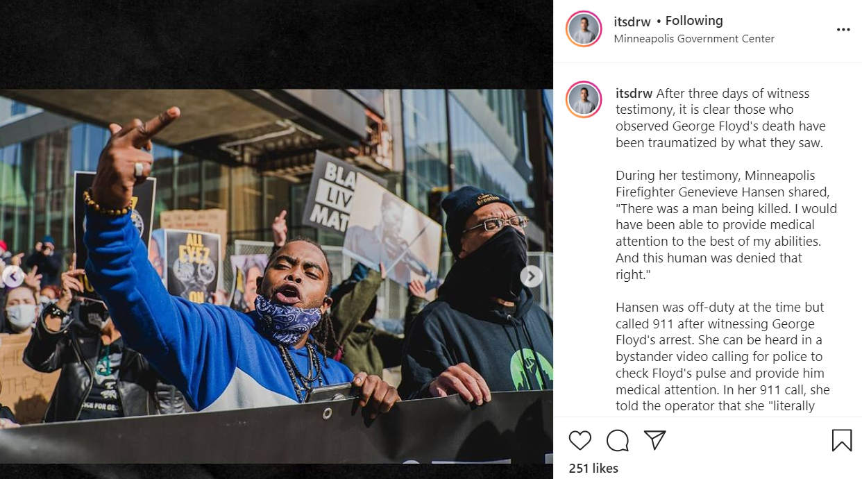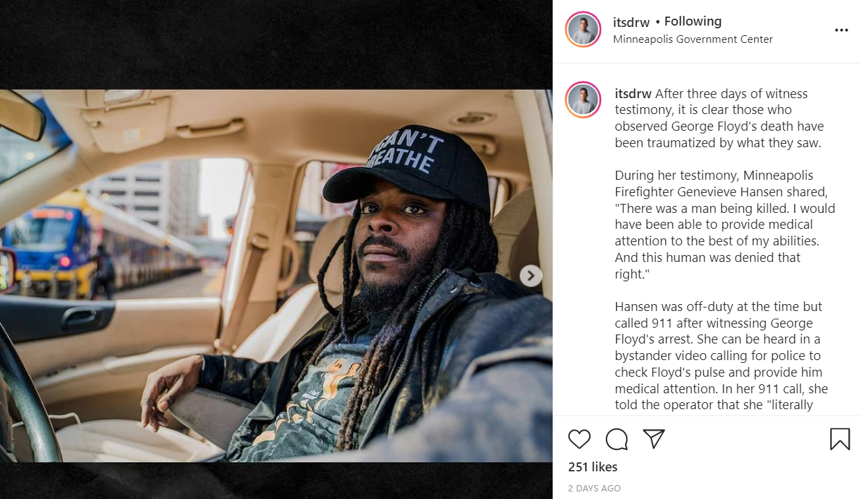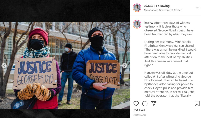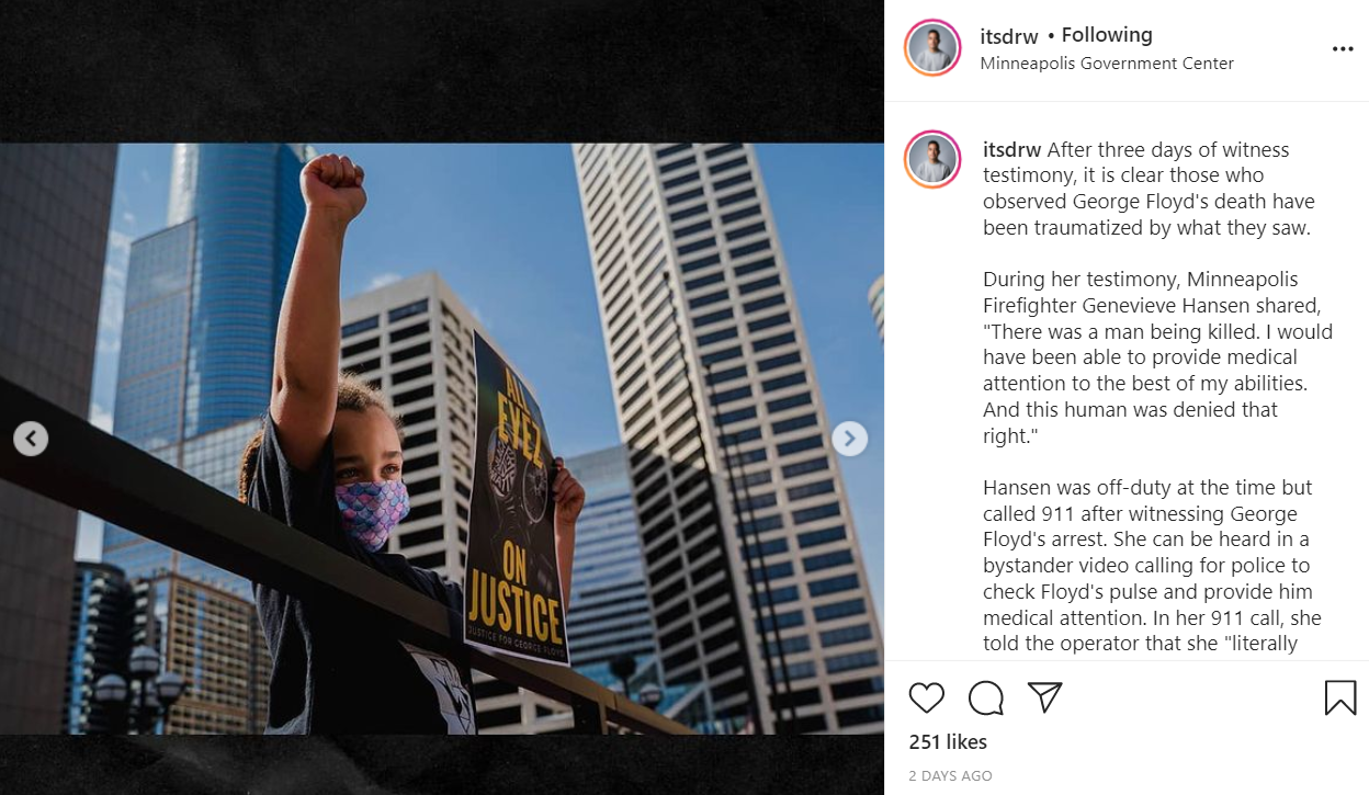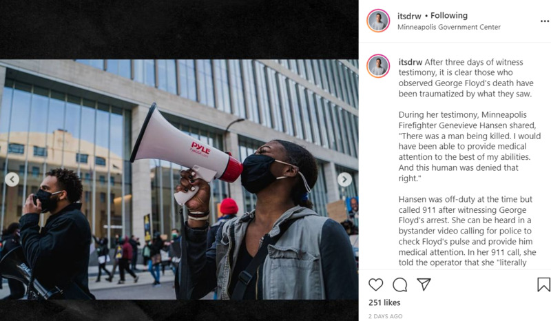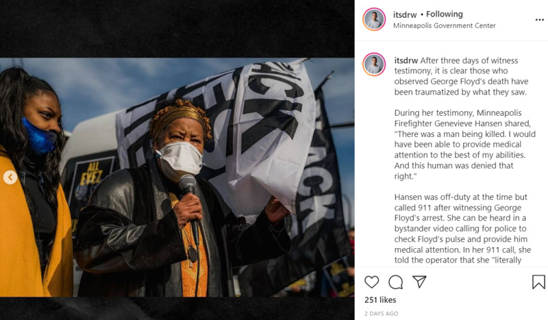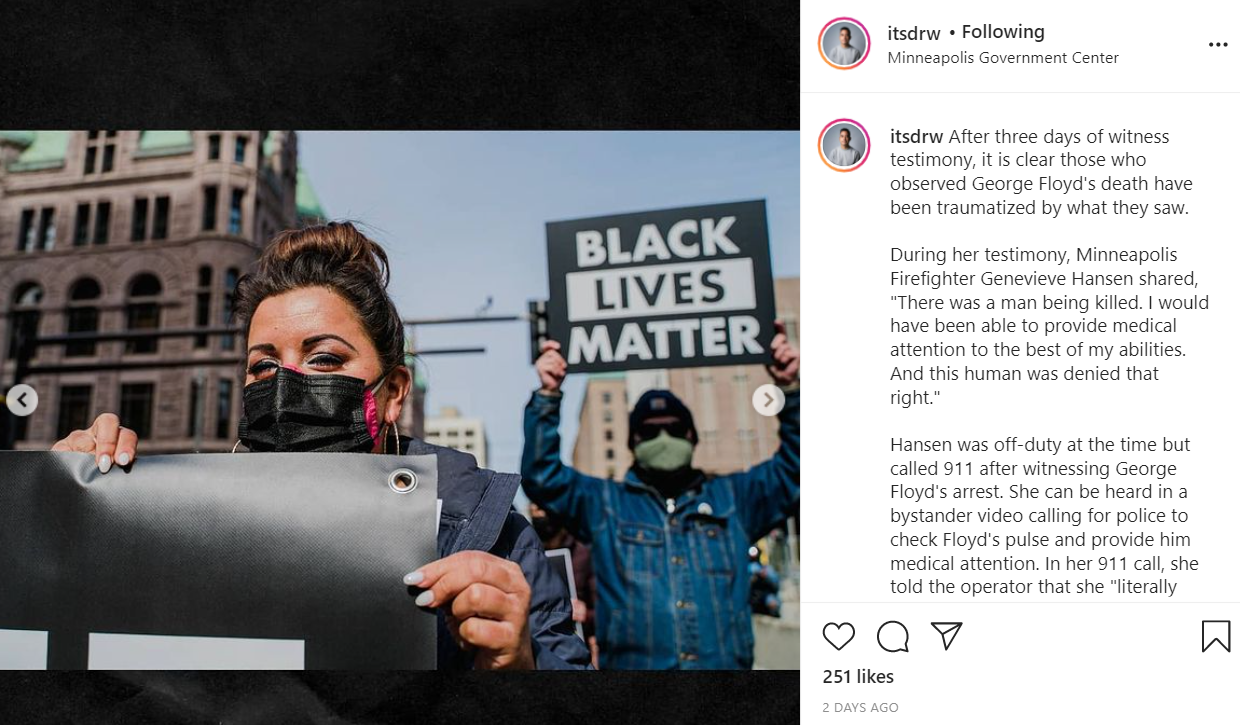During her testimony, Minneapolis Firefighter Genevieve Hansen shared, "There was a man being killed. I would have been able to provide medical attention to the best of my abilities. And this human was denied that right."