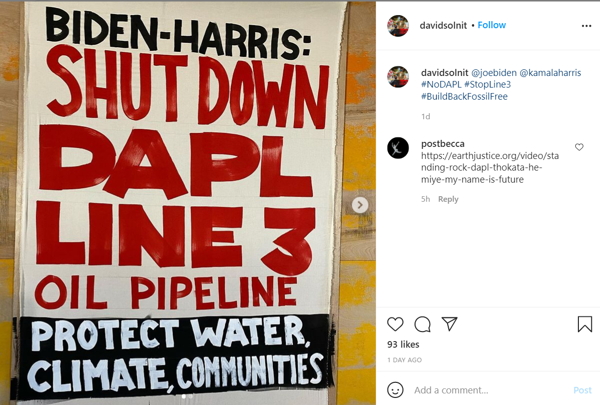 Demonstration demanding Biden administration stop DAPL and Pipeline number 3.