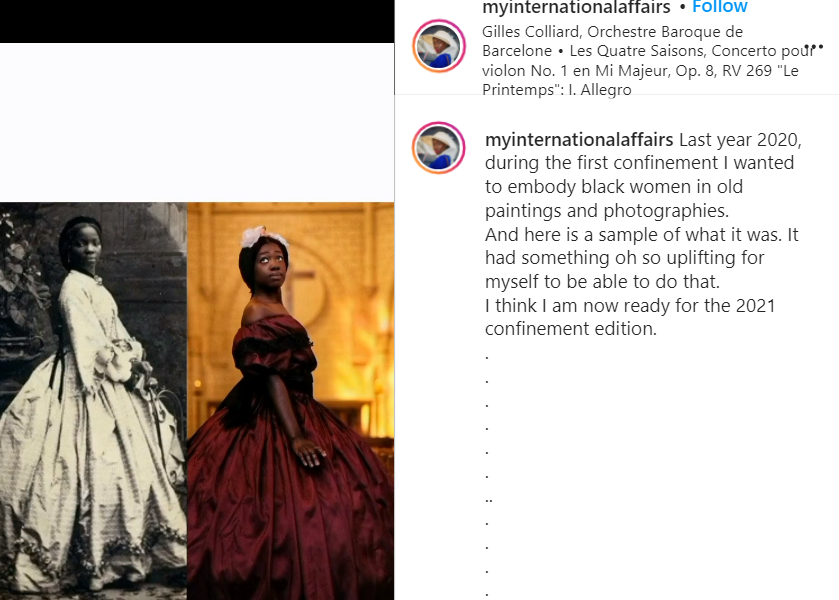 Last year 2020, during the first confinement I wanted to embody black women in old paintings and photographies.