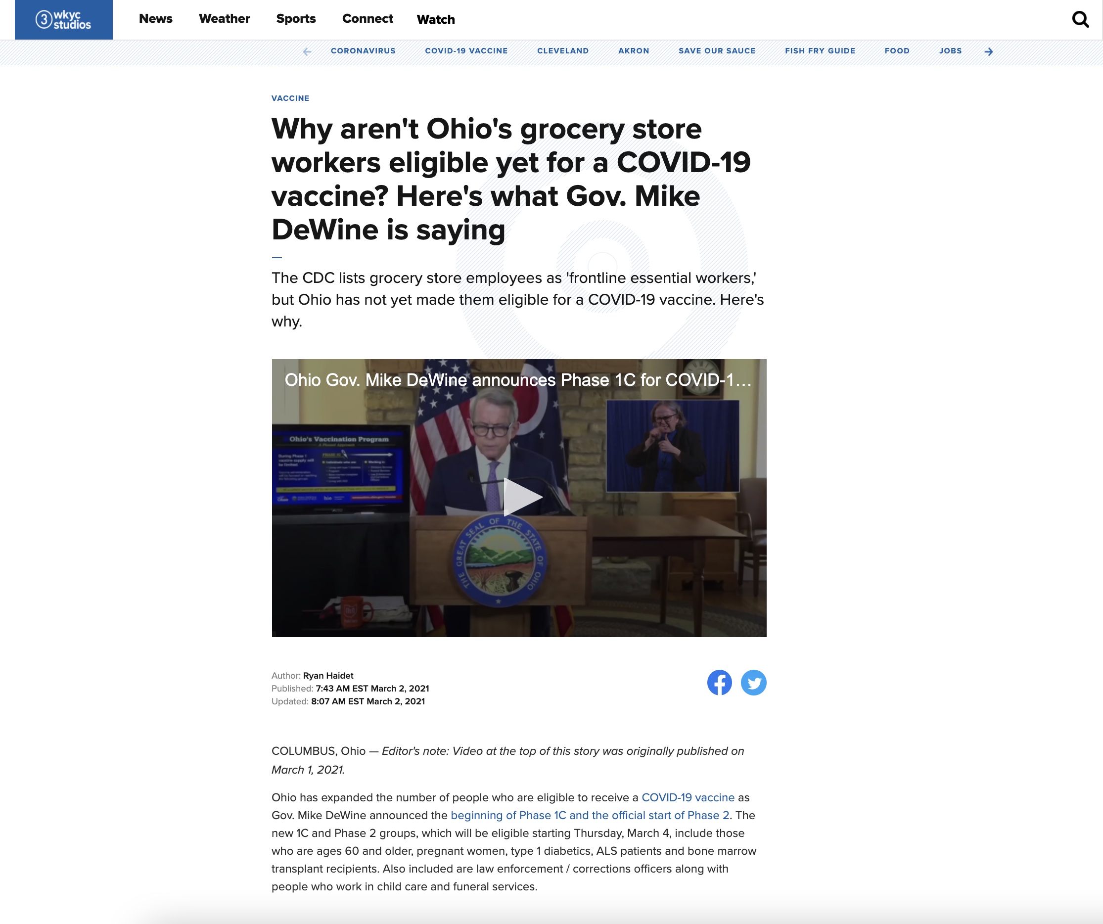 Why Aren't Ohio's Grocery Store Workers Eligible Yet for a COVID-19 Vaccine?