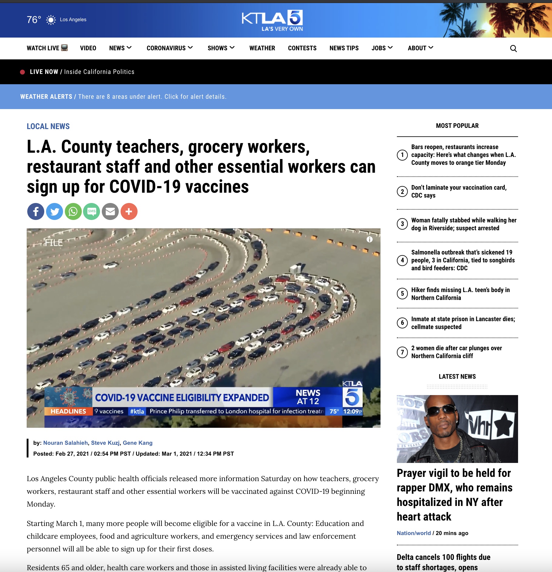 L.A. County teachers, grocery workers, restaurant staff and other essential workers can sign up for COVID-19 vaccines