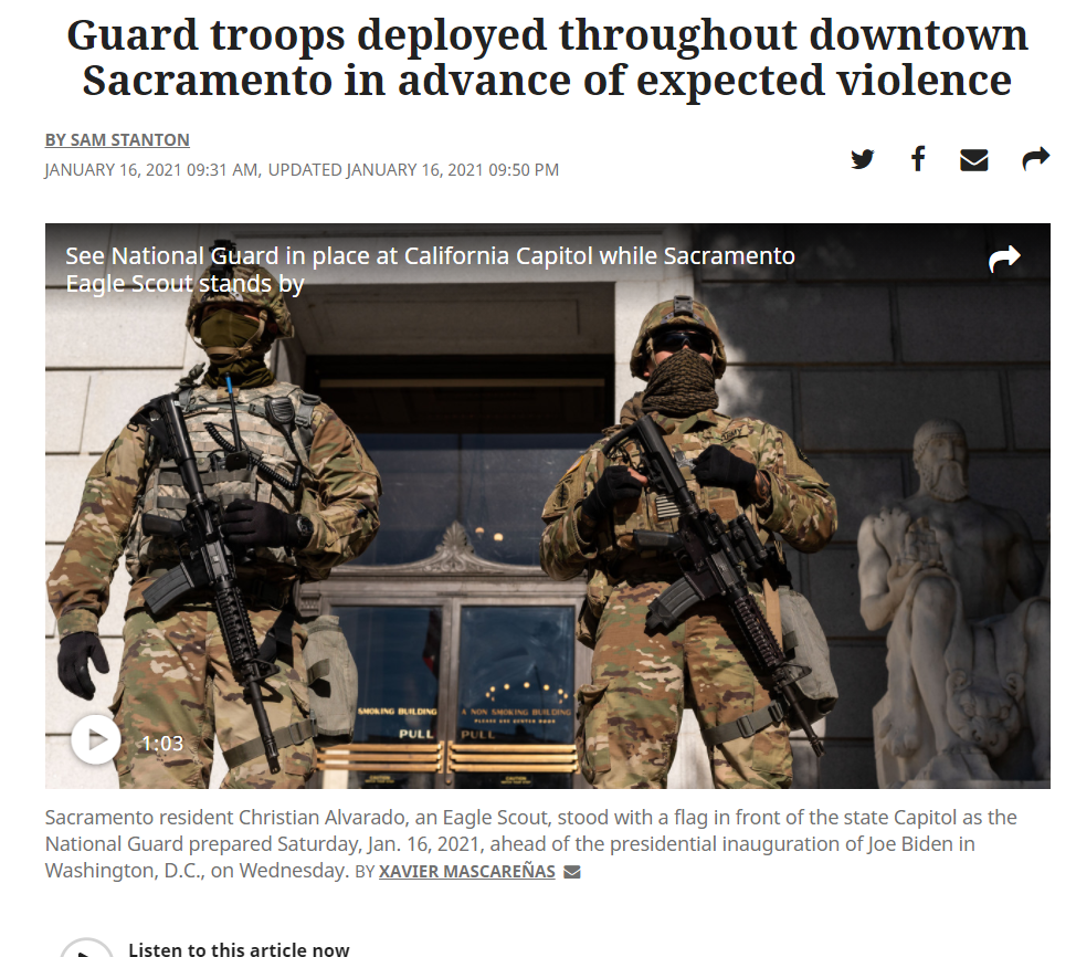 Guard troops deployed throughout downtown Sacramento in advance of expected violence