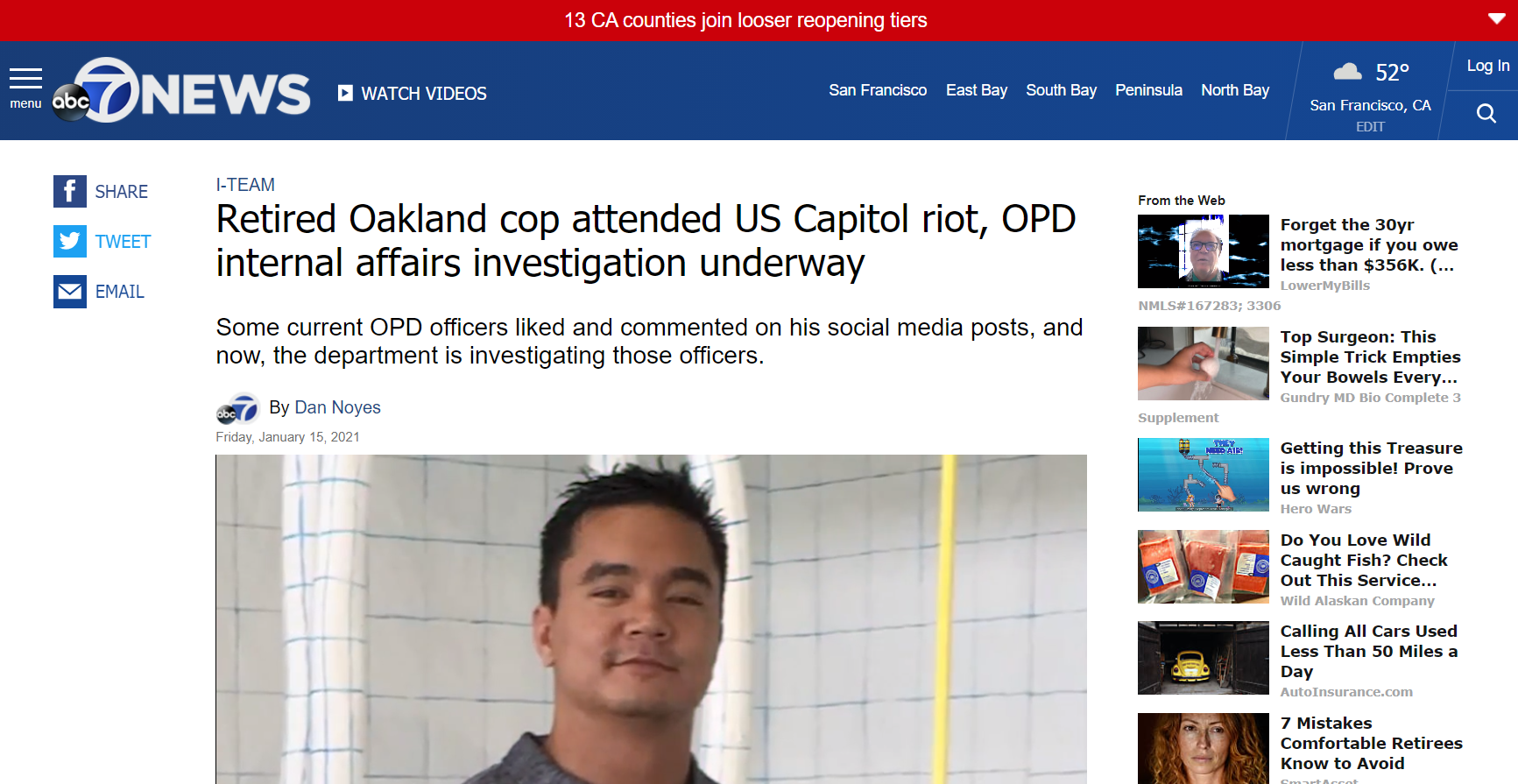 Retired Oakland cop attended US Capitol riot, OPD internal affairs investigation underway