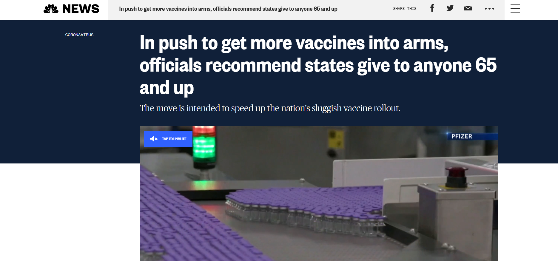 In push to get more vaccines into arms, officials recommend states give to anyone 65 and up