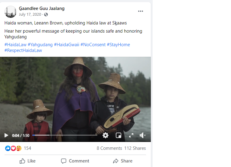 Haida woman Leeann Brown, reminds Queen Charlotte Lodge that they are not welcome on Haida Gwaii island during the pandemic. Many of the lodge’s boats are venturing too close to Haida fishing nets and traps which threatens their food supply. With such disregard to health of the Indigenous on the island, Brown explains how the Haida show their disagreement with lodge operations and reminds them that this land is sovereign to Haida Gwaii.