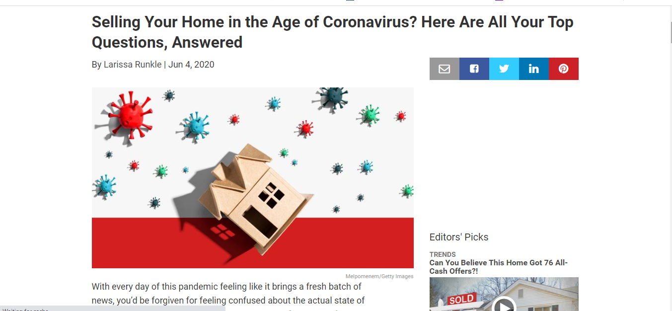 This is an article about selling a house during COVID. I wanted to include this source because one of my interviewees discussed some of the anxiety and stress that they experienced while trying to sell their home in March of 2020. This article provides context for what it is like to sell a home during COVID and how that market has changed. This article is by a realtor and provides advice and comparisons to what it may be like to sell a home during COVID and how that compares to selling during another crisis such as a recession.
