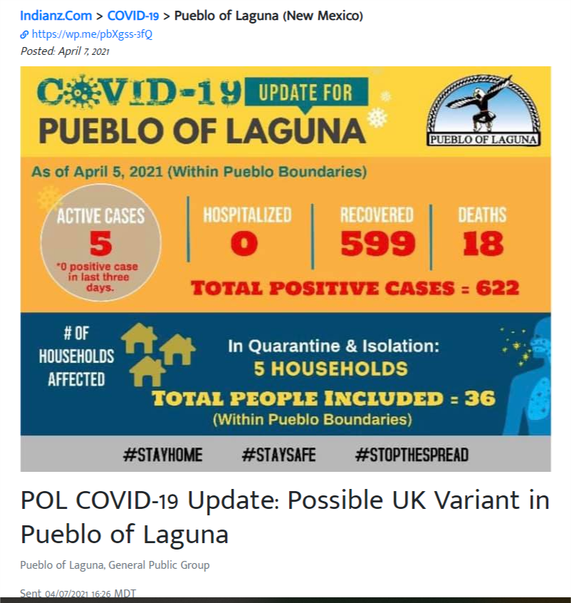 POL COVID-19 Update: Possible UK Variant in Pueblo of Laguna