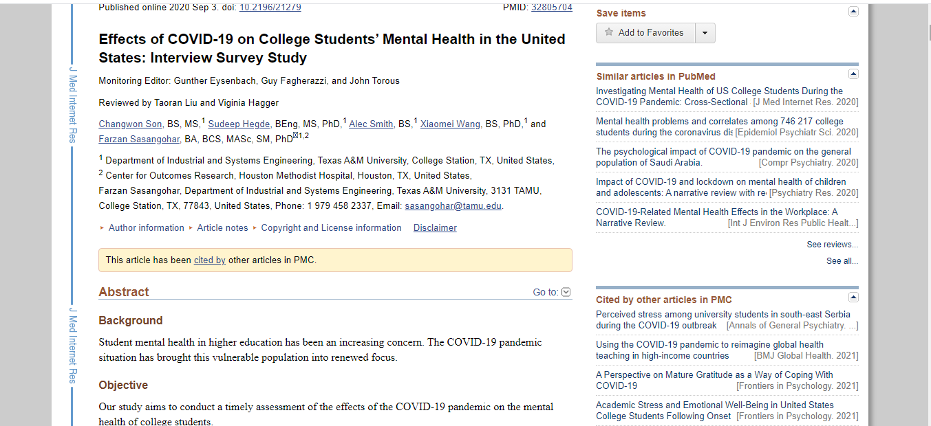 This is a story about how college student's mental health has been affected during COVID as a unique population. I wanted to include this to provide context about why my interviewee may have been reluctant to seek out resources due to the extra stress that he had been experiencing. This study goes into how the factors that college students, in particular, are experiencing. This article was done by a survey and shows how common these feelings are that may have deterred students from seeking help due to stress.