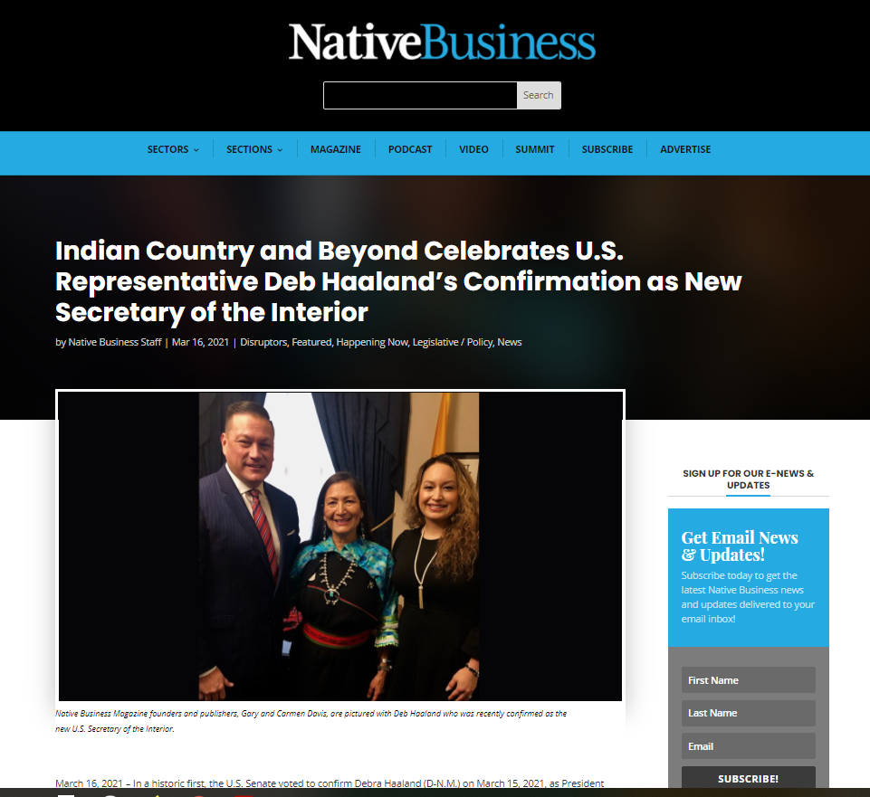 Indian Country and Beyond Celebrates U.S. Representative Deb Haaland’s Confirmation as New Secretary of the Interior