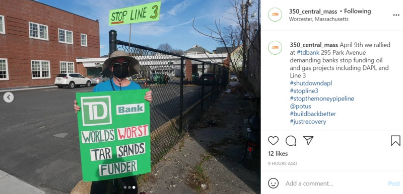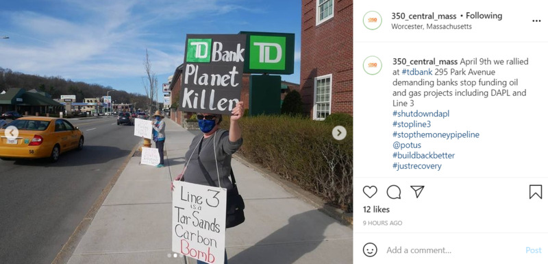 April 9th we rallied at #tdbank 295 Park Avenue demanding banks stop funding oil and gas projects including DAPL and Line 3