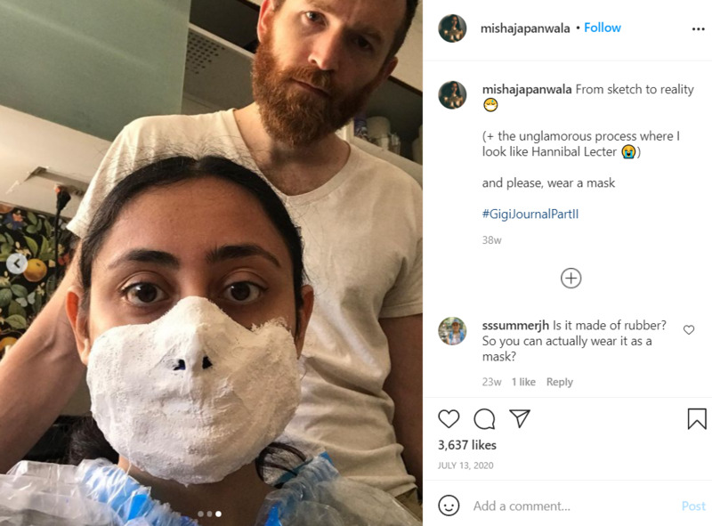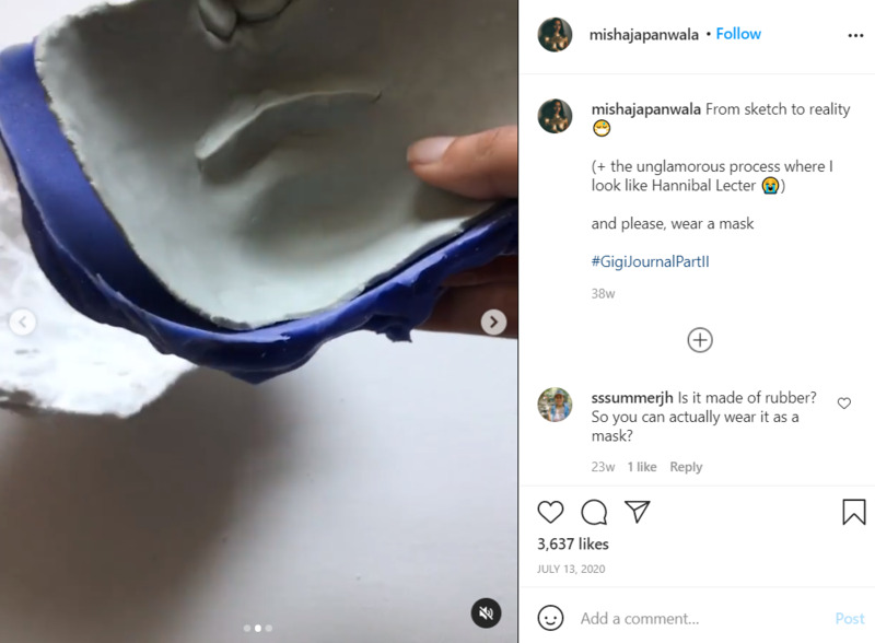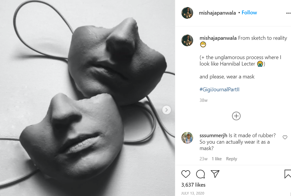 Artist Misha Japanwala uses plaster as an artform. Here they made a plaster mold of their face and encourages people to wear a mask.