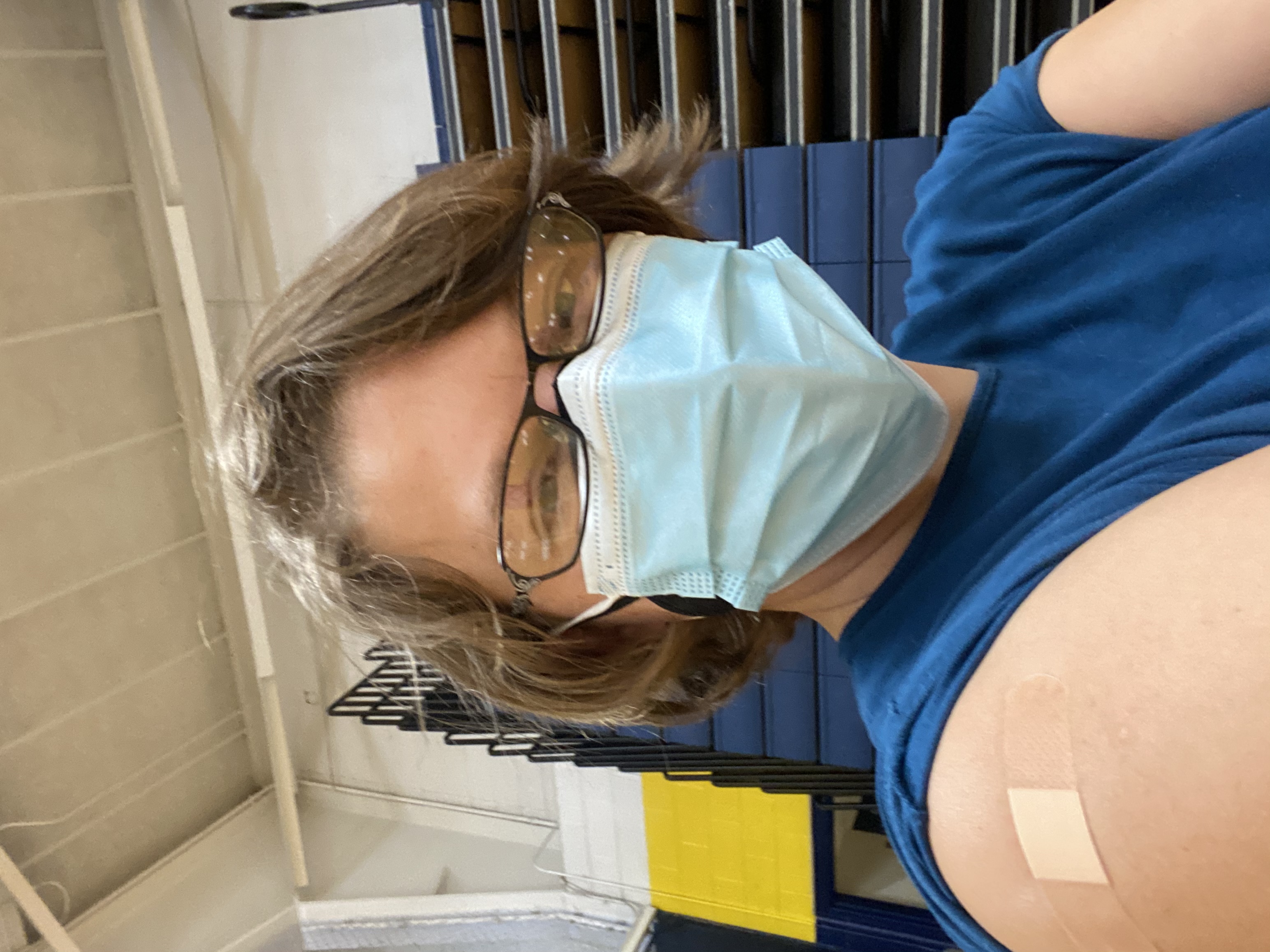 I was relieved & quiet while I got my shot, just taking it in. Later that night my arm was sore at the injection site. I was also exhausted that evening, but I think the exhaustion was more of a psychological response to finally starting my vaccination journey, & not a side effect of the vaccine.