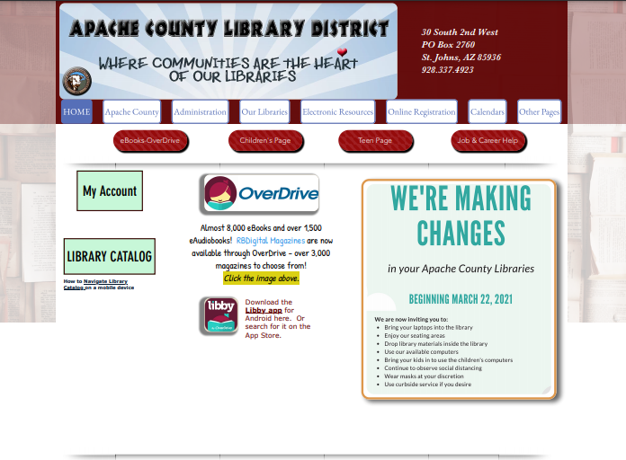 Apache County (AZ) Library COVID-19 Guidelines after March 22, 2021