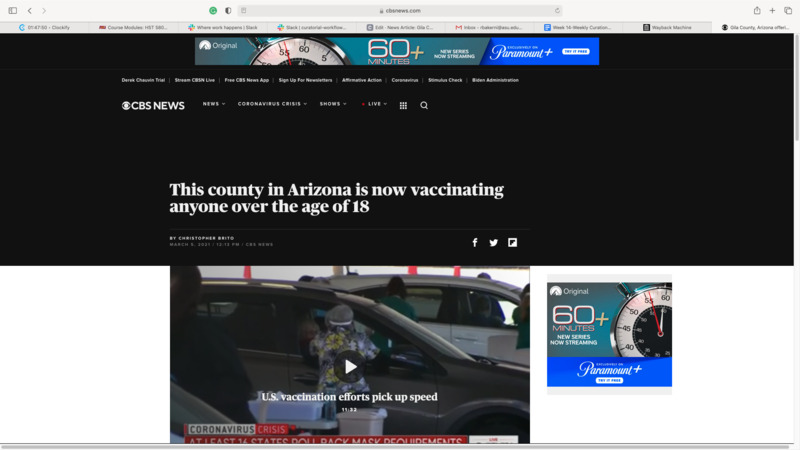 Part of the the decision to open vaccine eligibility is because Gila County has one of the lowest percentages of COVID-19 vaccine doses used in Arizona. Michael O'Driscoll, director of Public Health and Emergency Management for the county, told CBS affiliate KPHO-TV that they received permission from the state last week to offer the vaccine in a drive-thru clinic last weekend.