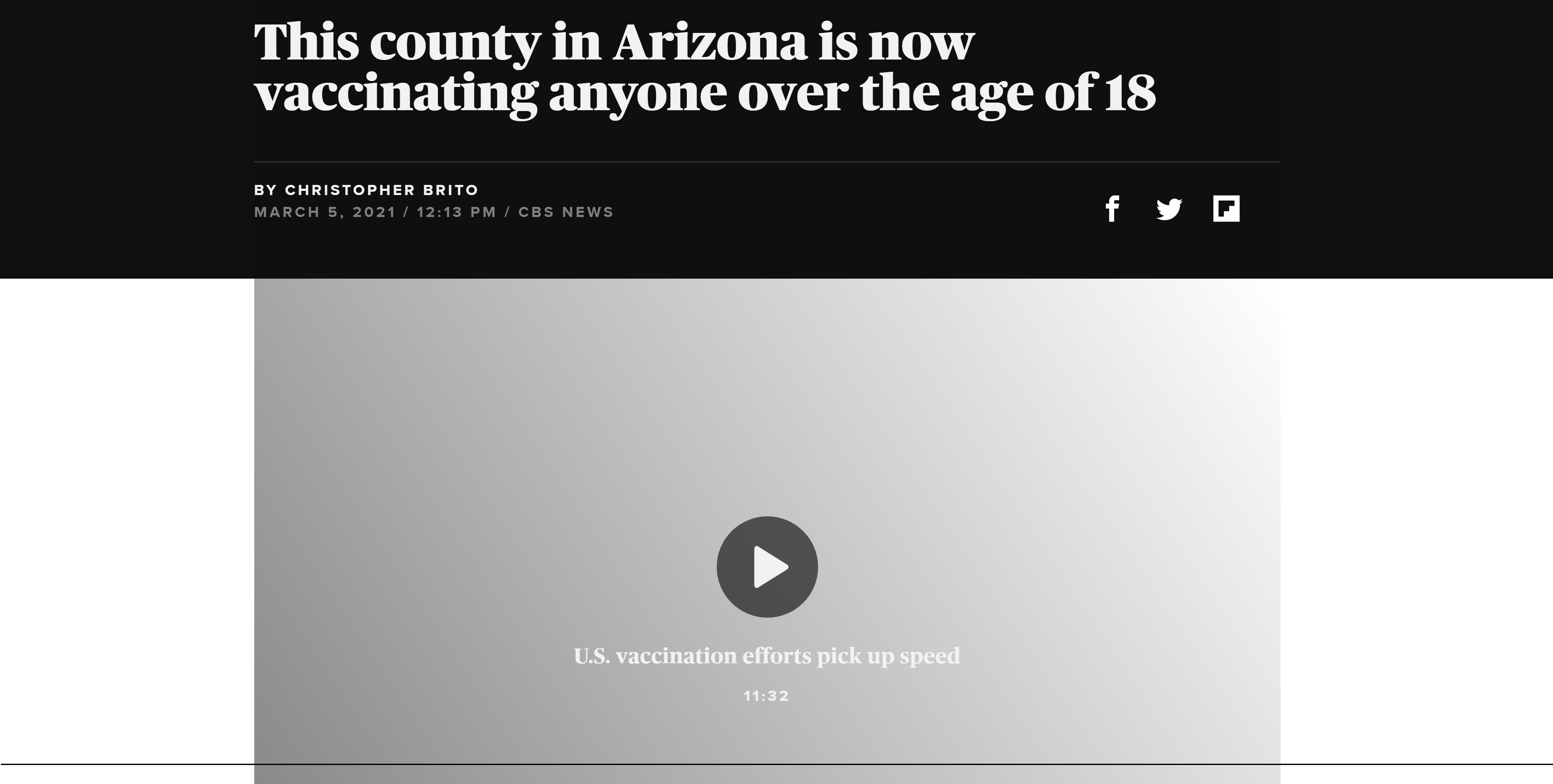 While a majority of states and cities are still vaccinating higher priority groups of people, one county in Arizona is now allowing any resident over the age of 18 to receive the COVID-19 vaccine.