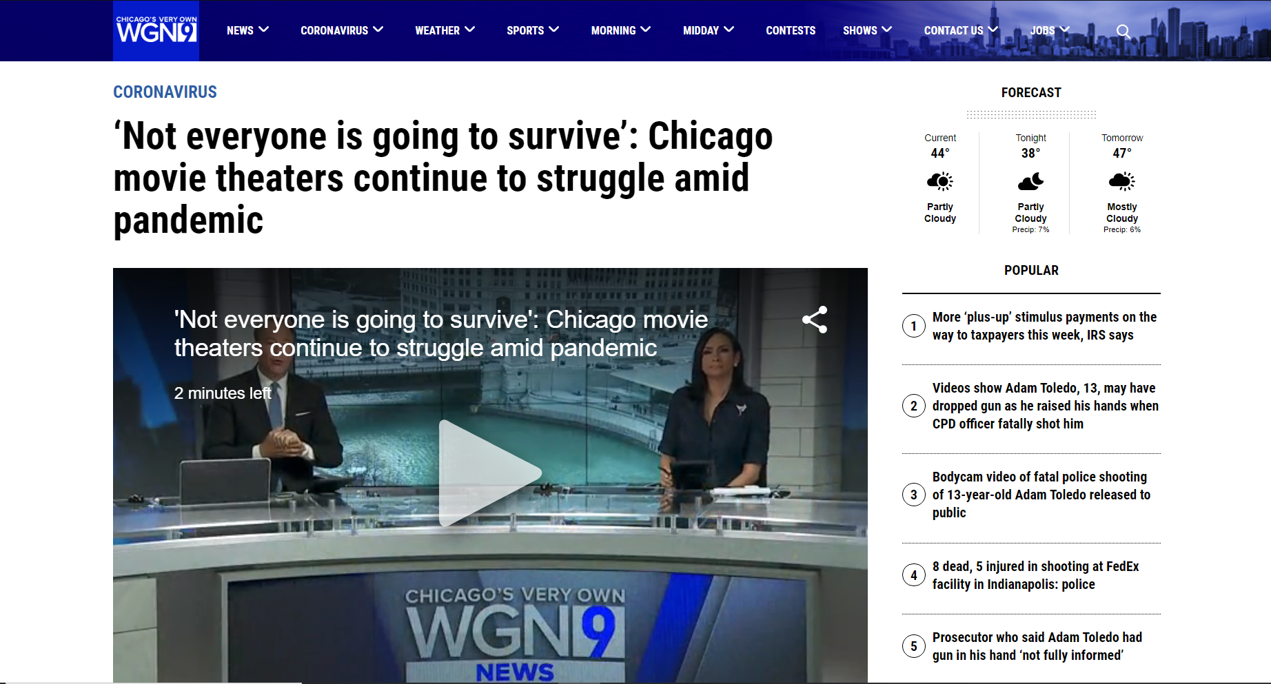 ‘Not everyone is going to survive’: Chicago movie theaters continue to struggle amid pandemic