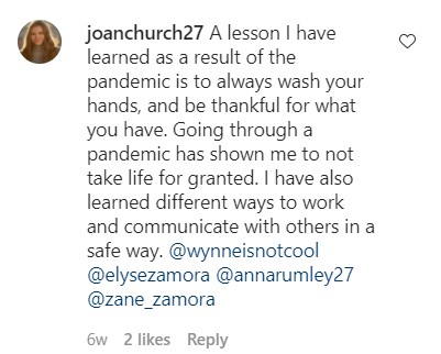 A lesson I have learned as a result of the pandemic is to always wash your hands, and be thankful for what you have. Going through a pandemic has shown me to not take life for granted. I have also learned different ways to work and communicate with others in a safe way. @wynneisnotcool @elysezamora @annarumley27 @zane_zamora