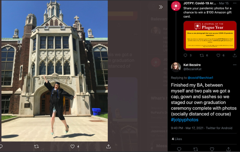 Finished my BA, between myself and two pals we got a cap, gown and sashes so we staged our own graduation ceremony complete with photos (socially distanced of course)