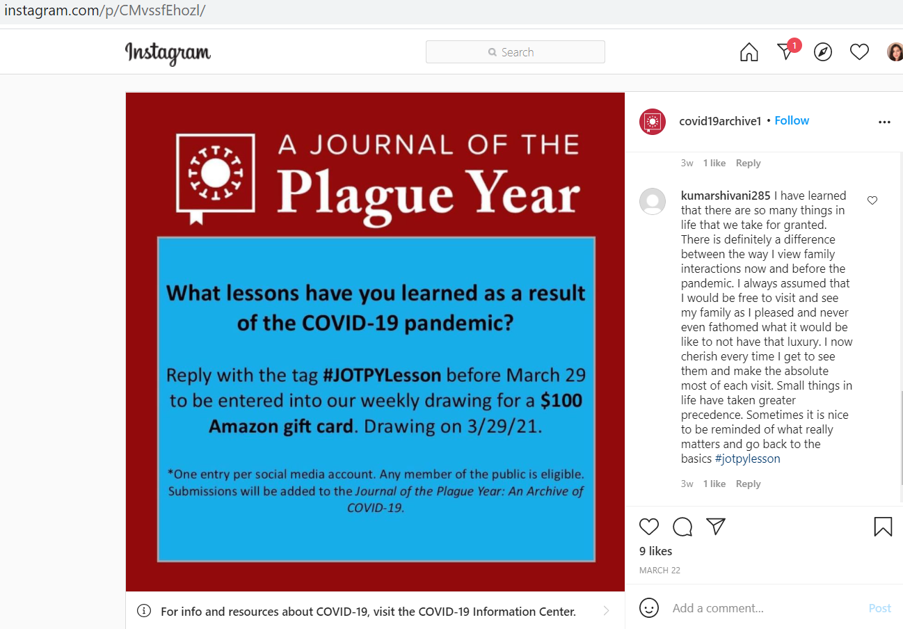 I have learned that there are so many things in life that we take for granted. There is definitely a difference between the way I view family interactions now and before the pandemic. I always assumed that I would be free to visit and see my family as I pleased and never even fathomed what it would be like to not have that luxury. I now cherish every time I get to see them and make the absolute most of each visit. Small things in life have taken greater precedence. Sometimes it is nice to be reminded of what really matters and go back to the basics #jotpylesson