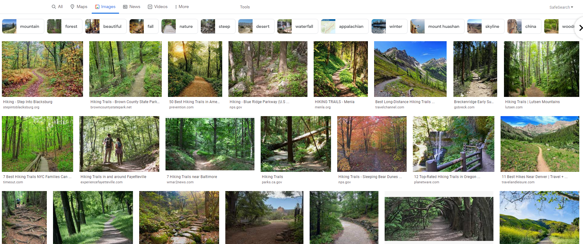 https://www.google.com/search?q=hiking+trail&tbm=isch&ved=2ahUKEwj63fXtgM3wAhWVFqwKHZ-PD6AQ2-cCegQIABAA&oq=hiking+trail&gs_lcp=CgNpbWcQAzIECCMQJzIFCAAQsQMyAggAMgIIADICCAAyAggAMgIIADICCAAyAggAMgIIADoHCAAQsQMQQzoECAAQQ1DElAFYwaEBYMmjAWgBcAB4AIABN4gB4AKSAQE3mAEAoAEBqgELZ3dzLXdpei1pbWfAAQE&sclient=img&ei=hm-gYPqCHJWtsAWfn76ACg&bih=746&biw=1522#imgrc=ptxPxgyVb3KL_M