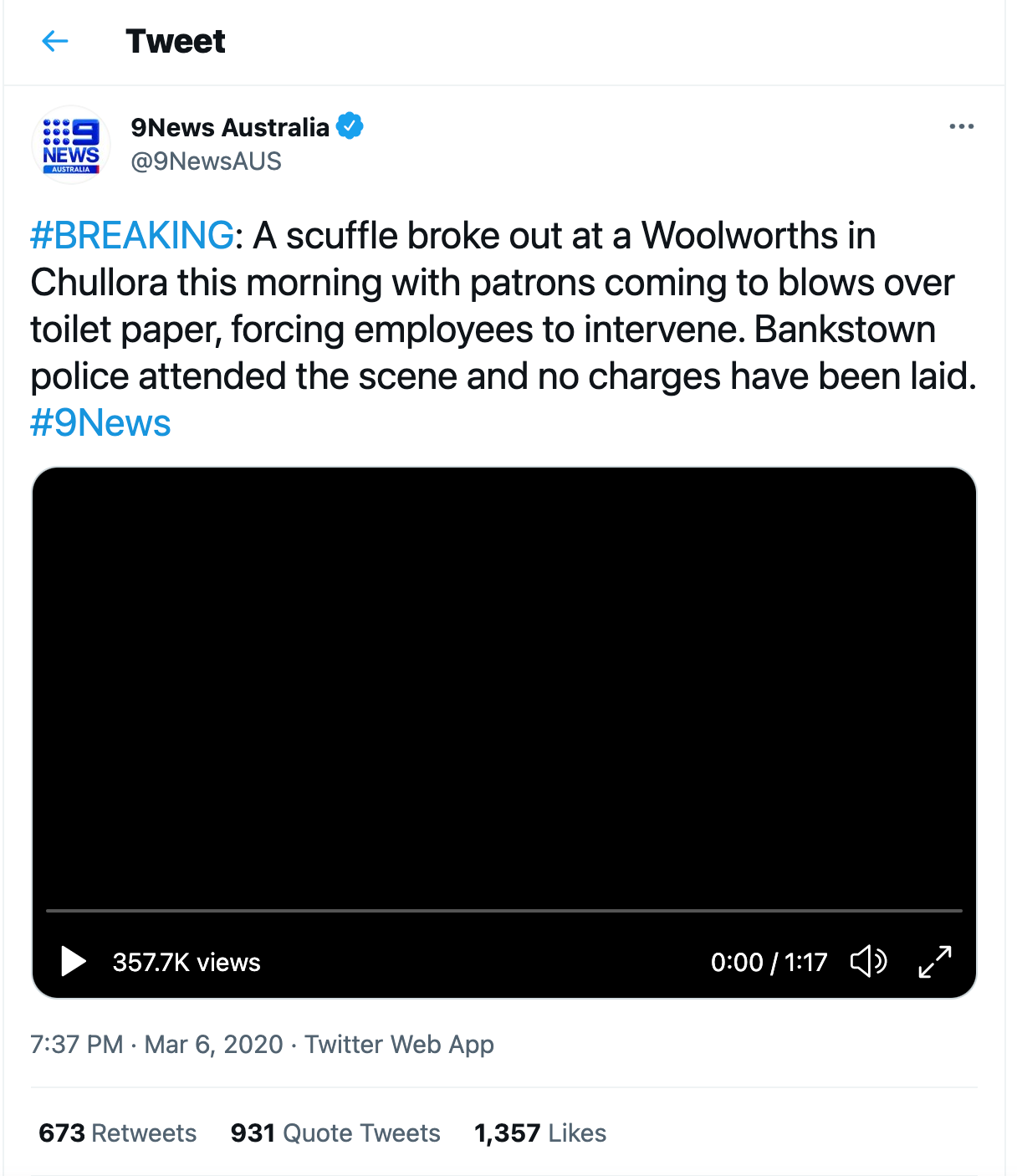 In march of 2020 there was a brawl in Australia over toilet paper. I saw this video going viral on all social media platforms. Three women were recorded fighting in Sydney . Police were called to the scene when they received multiple calls that a woman had been assaulted. The lady had a shopping cart filled with packs of toilet paper leaving the rack empty so another lady grabbed one from her cart and that’s when the fight started . In the video footage you hear “ I just wanted one packet ”. It was heartbreaking seeing people be inconsiderate and violent over necessities . Many stores were experiencing shortages on toilet paper, Lysol, disinfecting wipes, alcohol, hand sanitizer and more.
