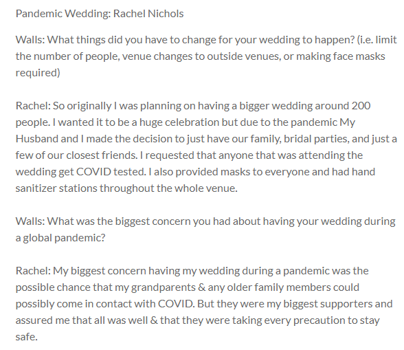 Walls: What was the biggest concern you had about having your wedding during a global pandemic?