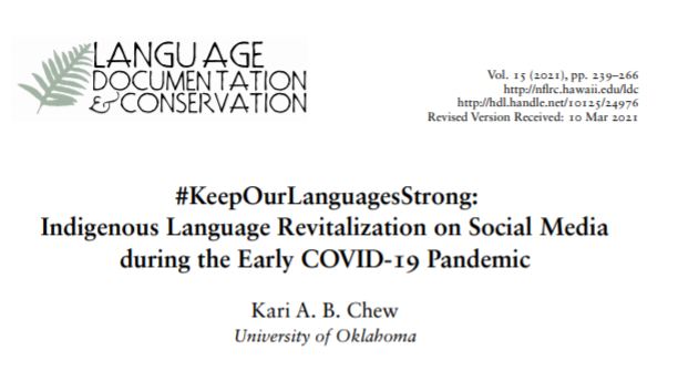 This is a paper by Kari A. B. Chew at the University of Oklahoma that reviews language revitalization efforts during the early part of the COVID-19 pandemic. The paper focuses on revitalization efforts among Indigenous groups in the United States and Canada.
