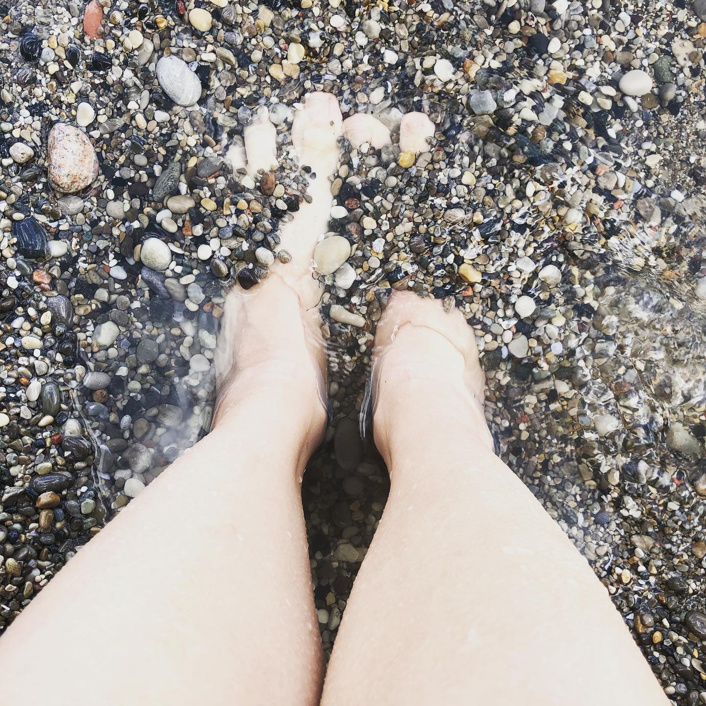 This photograph is of my feet, buried in the sand and rocks of the beach of Lake Michigan, on the coast of Port Washington.