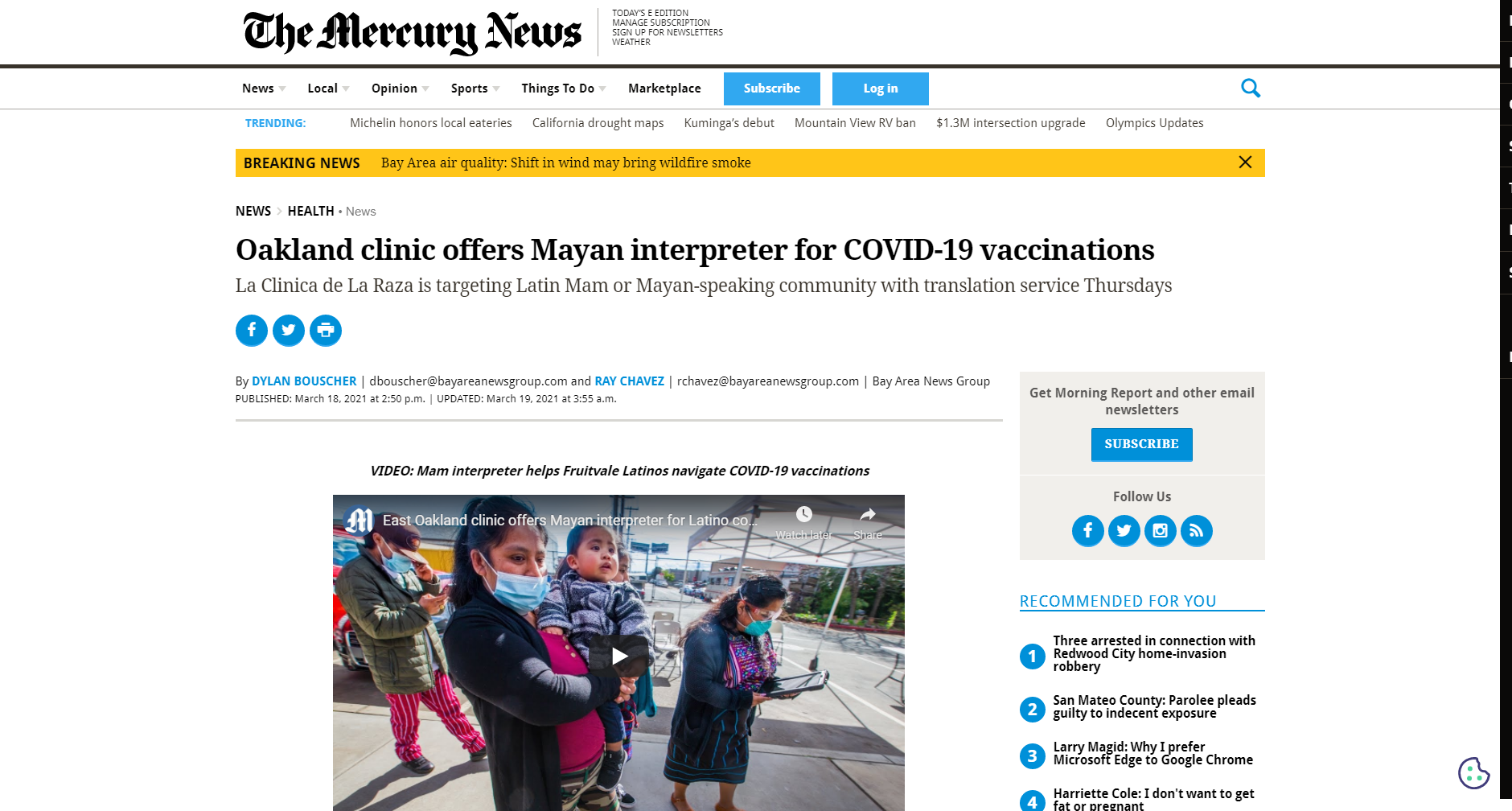 This month, La Clinica de La Raza began offering the community-targeted vaccination service at 32 locations across the Bay Area, including ASCEND Elementary School on East 12th Street, where Latinos who speak Mam, K’iche ‘and Q’eqchi’ can get translation help from appointment to inoculation on Thursdays.