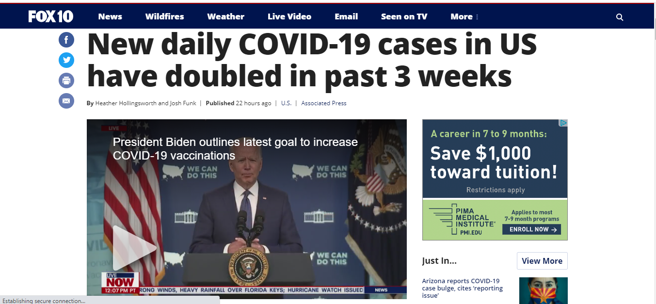New daily COVID-19 cases in US have doubled in past 3 weeks