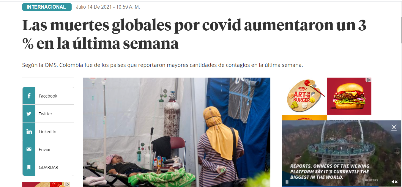 Las muertes globales por covid aumentaron un 3 % en la última semana [Global covid deaths up 3% in the last week}