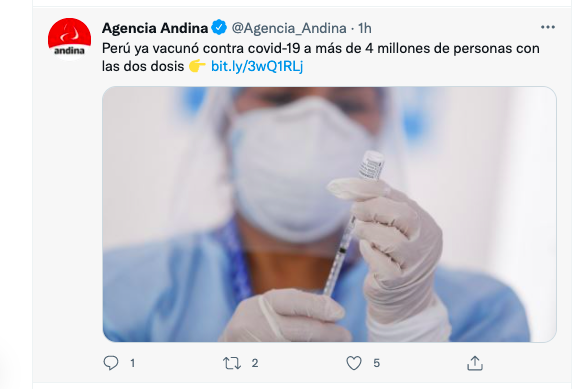 According to official reports, Peru has vaccinated at least 4 million people with 2 doses. In a country of 32 million people, the progress is slow, but moving forward. Peru is depending on several countries to supply its vaccines including China and the U.S.