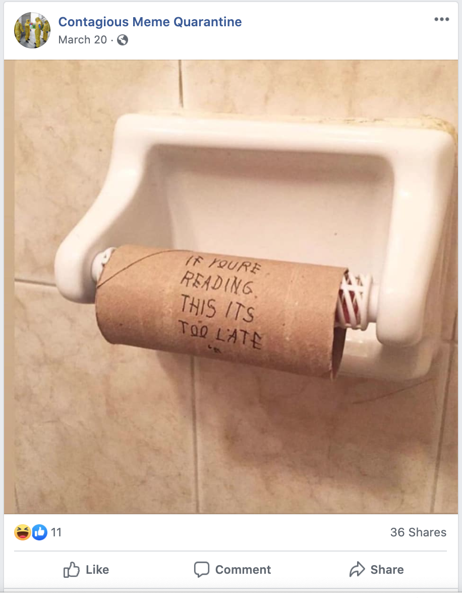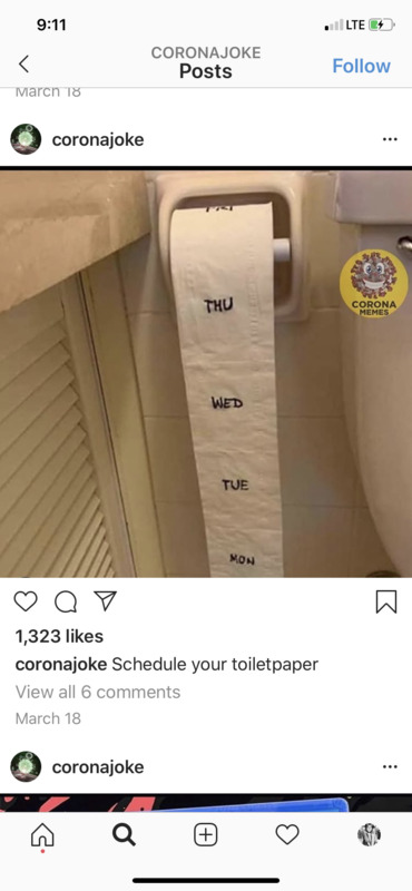Humorous memes about toilet paper during corona