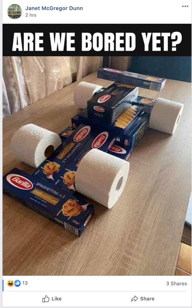 During quarantine I collected many humorous memes about staying at home and the problems that brought. All sorts of subjects were covered: cooking, getting along with your spouse/roommates, homeschooling the kids, learning to bake bread, being stuck at home, sanitizing, facemasks, people hoarding toilet paper, boredom, effects of isolation, etc. Here are a few of those memes.