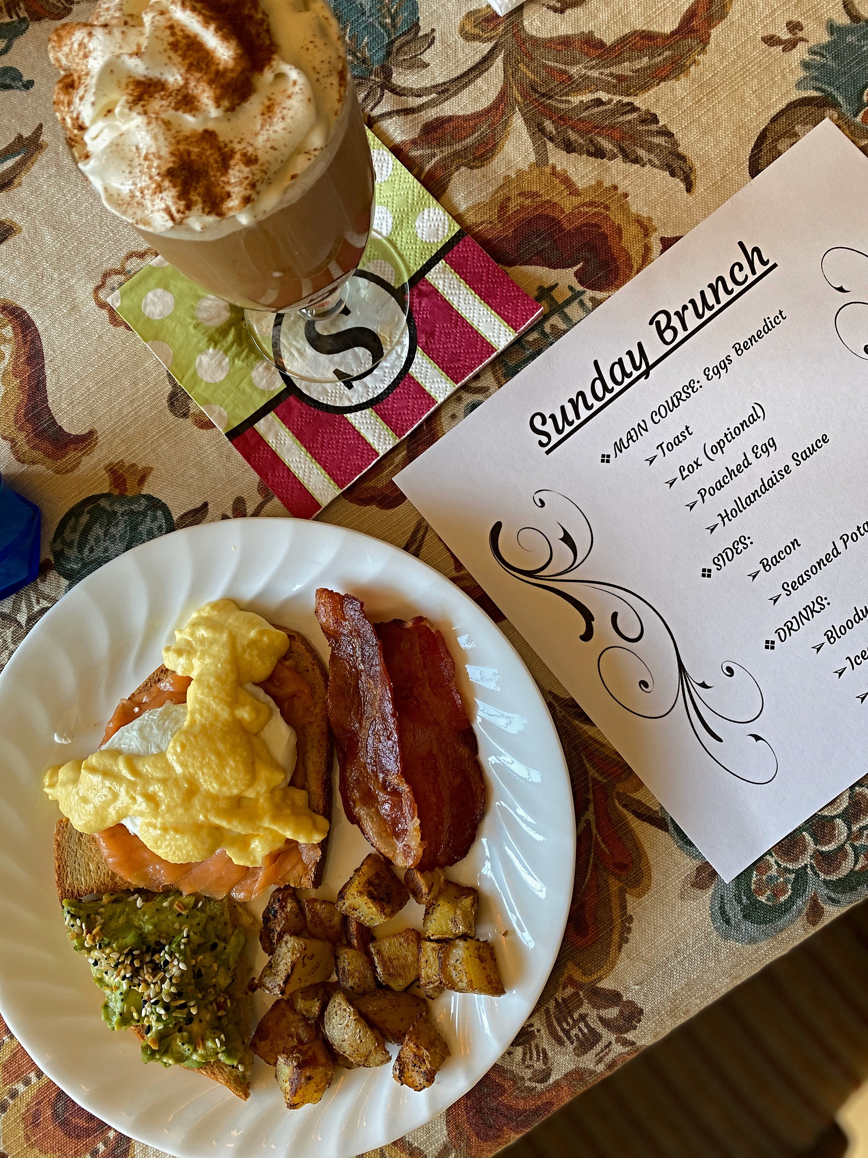 Before the pandemic, one of my favorite ways to celebrate a special occasion was by going to brunch in New York City. Understandably, once the pandemic began, I knew that it would be a long, long time before I would see those city lights again. Rather than get down in the dumps, I decided to improvise and bring the brunch experience to my family home as a way to lighten the rather grim mood. A few weeks into the lockdown mandate in March 2020 I told my family to stay away from the kitchen. I organized a brunch with avocado toast, bacon, fried potatoes, and the centerpiece, a meal I had never made on my own, and a brunch staple, eggs benedict. I learned how to poach an egg for the first time with a few failed attempts. I then decorated the plates with the hollondaise sauce as if it were at a 5 star city restaurant. I made menus with drink options ranging from mimosas to bloody Mary’s and served my family, pretending I was out in the city for a celebratory brunch, despite the lack of celebrating going on in the world at the moment. Even if for an hour, this experience eating brunch lightened our moods and reminded us that despite what was going on outside our home, we at least had each other.