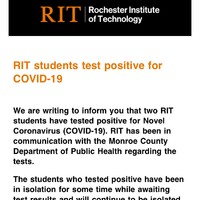 RIT students test positive for COVID-19 Email sent to Faculty and Students at RIT Linked Data Interactive Resource