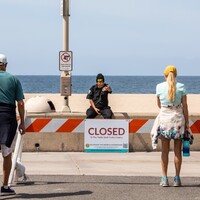 Security standing in front of the Beach – Hermosa Beach, California Linked Data Interactive Resource