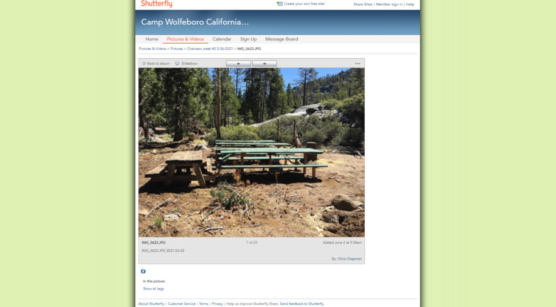 The photo was taken during the week of May 26, 2021, and was submitted to the Camp Wolfeboro Shutterfly site by Chris Chapman, who is on the properties subcommittee for the Golden Gate Area Council, which owns Camp Wolfeboro.