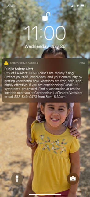 I always get a reality check of how different Arizona is handling the pandemic when I visit my family in California. Life has been back to "normal" here in Arizona for a while now. Masks are rarely seen, the number counts are not reported as much and coverage of vaccination sites is rare. In California, it is obvious that life has not yet returned to normal. There is no distinction between vaccinated and unvaccinated, since no one is allowed to ask, everyone is asked to still wear masks. I was surprised to get this public safety alert while at my cousin's house last week. I feel like it was a reminder that life shouldn't be "normal" that we are still living through a pandemic and the storm has not yet passed. I wonder how people in Arizona would react to public safety messages like this one.