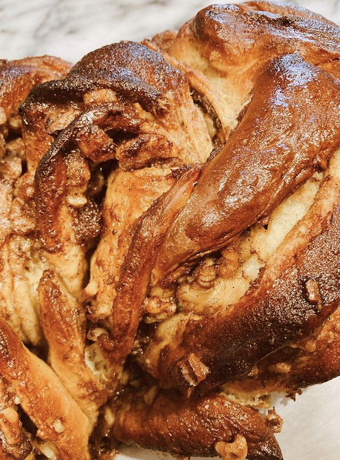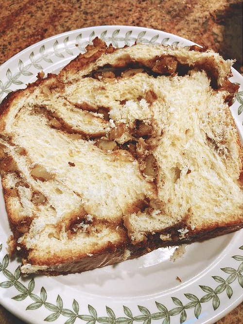 The photos I am attaching here show my progression as a baker. My first babka was fine and tasted great, but as you can see, I have improved in technique and in flavor over time. My favorite babka recipe comes from King Arthur Flour. As a new baker, I relied on the King Arthur Flour website for flour and yeast tips, baking tools, and recipes. I was too hesitant to add walnuts the first time and I accidently used a quick-rise east instead of standard yeast. As time went on, I felt more comfortable adding walnuts and raisins. I also felt more comfortable working with the dough to perfect the twisting technique of the babka.