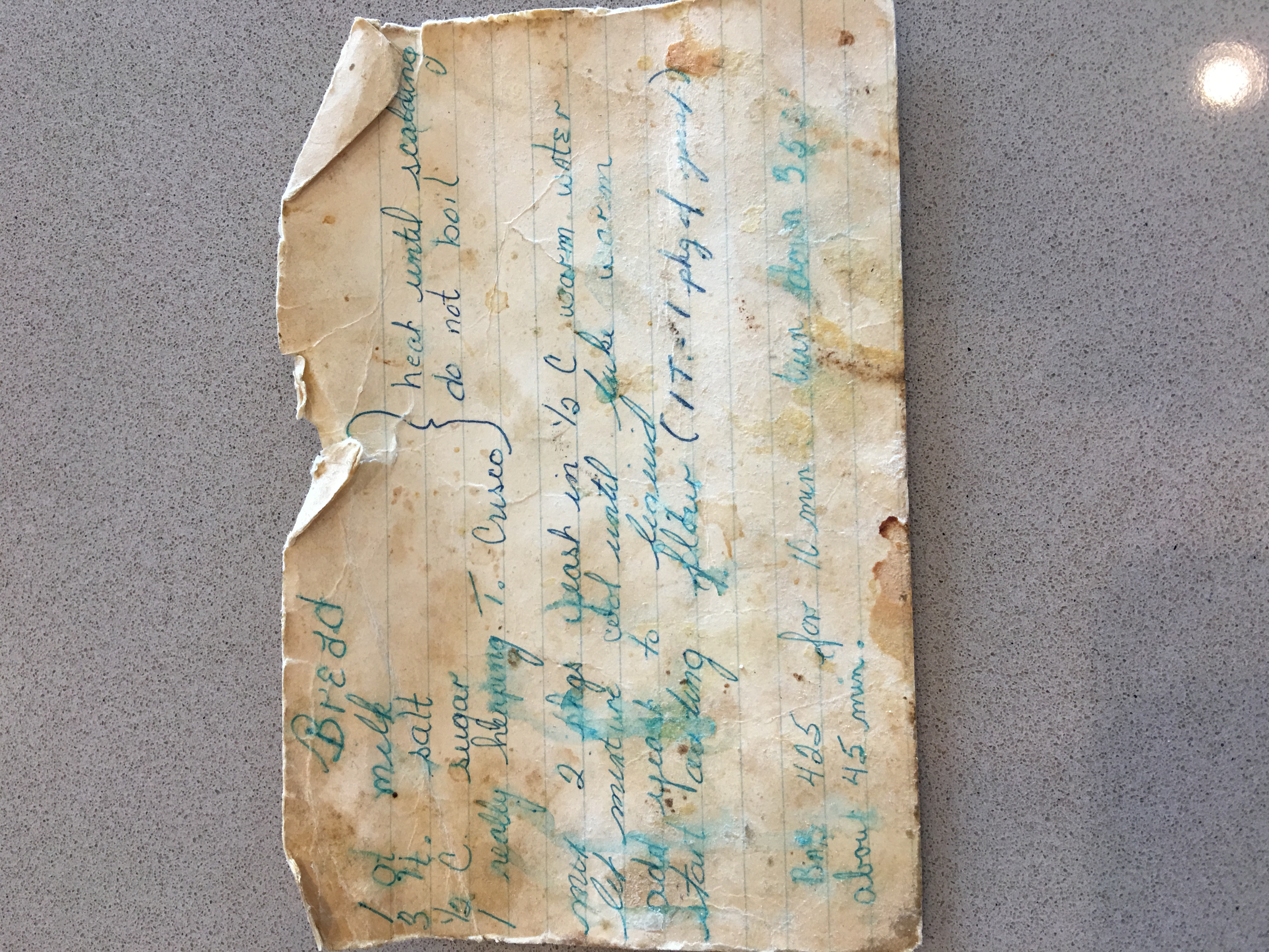 Before meeting up with the family, my grandmother brought up the idea to teach my wife and I how to make homemade bread. It was her grandmothers recipe, and I loved it, as she would occasionally make the dough to make scones or kraut biscuits. This particular recipe made a lot of dough and needed to rise three times. Because of this, making bread was an all day event.