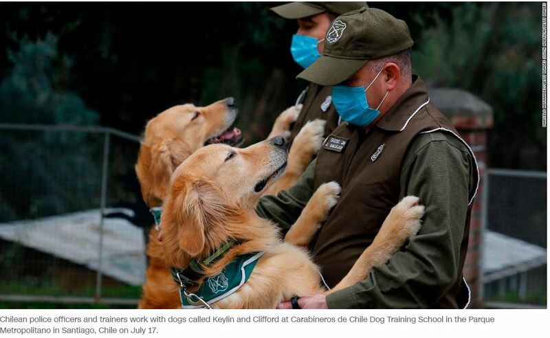 Police dogs in Chile are being trained to sniff out Covid-19 in humans, with hopes that they will facilitate the reopening of busy public spaces including malls, sports centers, bus terminals and airports this fall.
