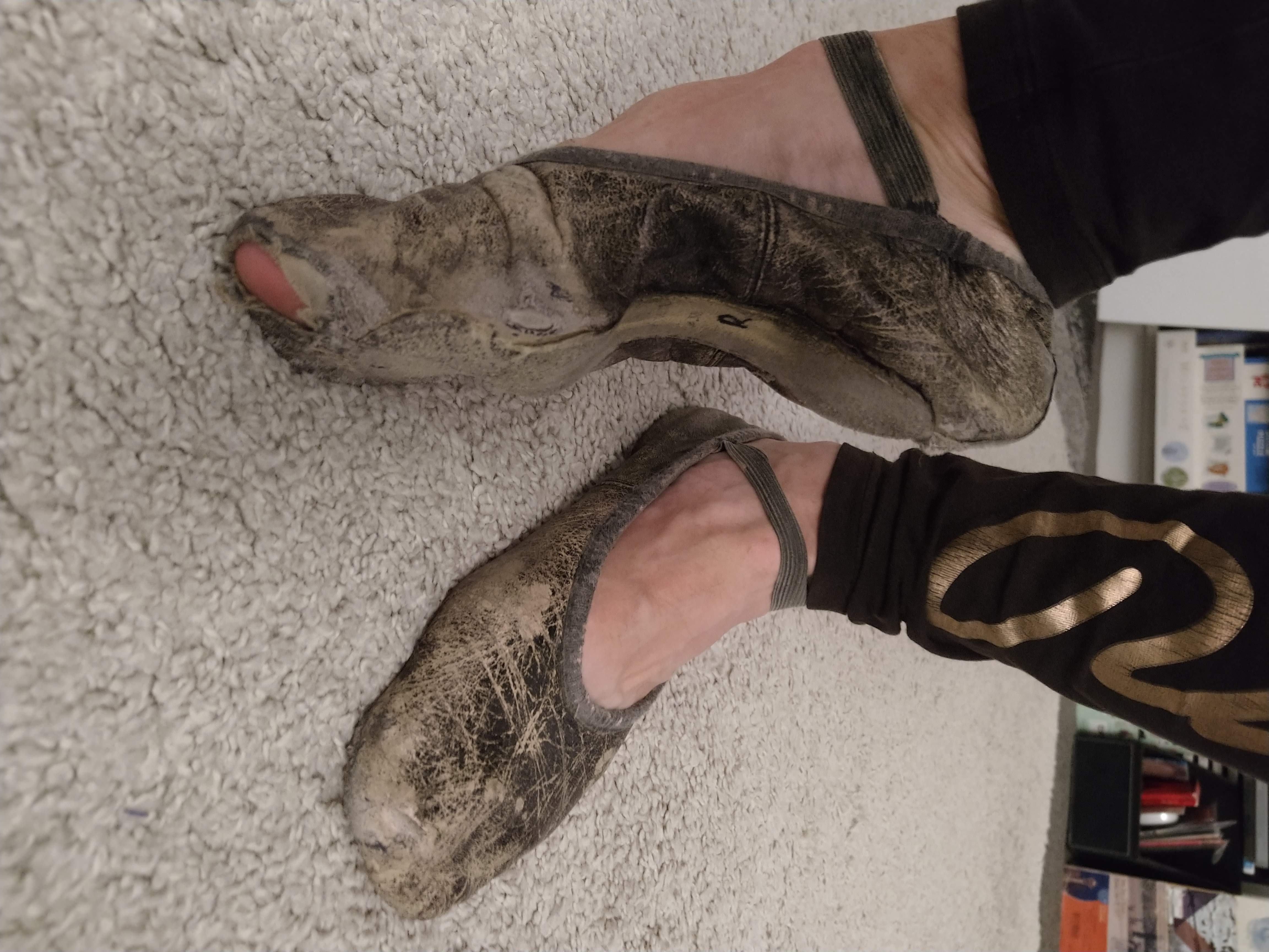 Trying to pivot to online dance classes. Pulled my very old ballet shoes out to try to keep up with classes during Melbourne's long lockdown in 2020. Sadly it didn't really work due to a lack of space and the fact that I have carpeted floors, but it was nice to be able to connect with friends and feel like we were doing something together.