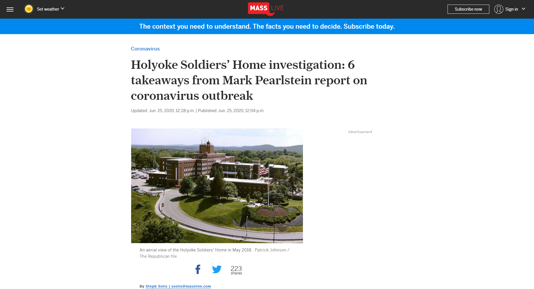 This article comes from MassLive and reports on the major takeaways from a report that documents where the Holyoke Soldiers' Home in Holyoke, Massachusetts, failed in its COVID-19 response.